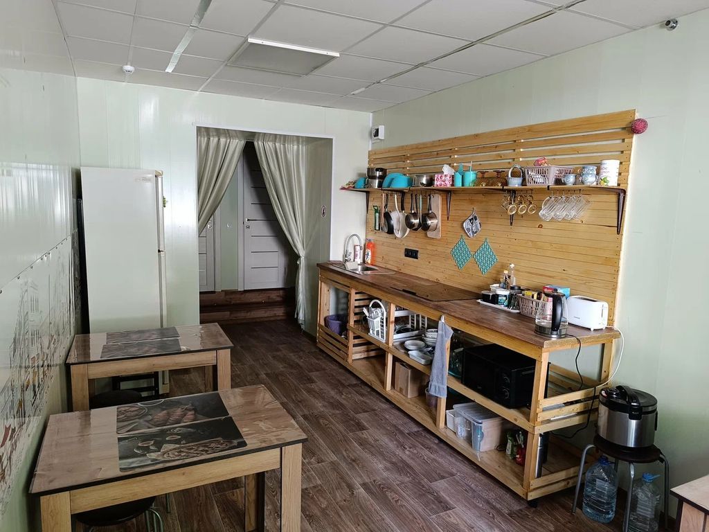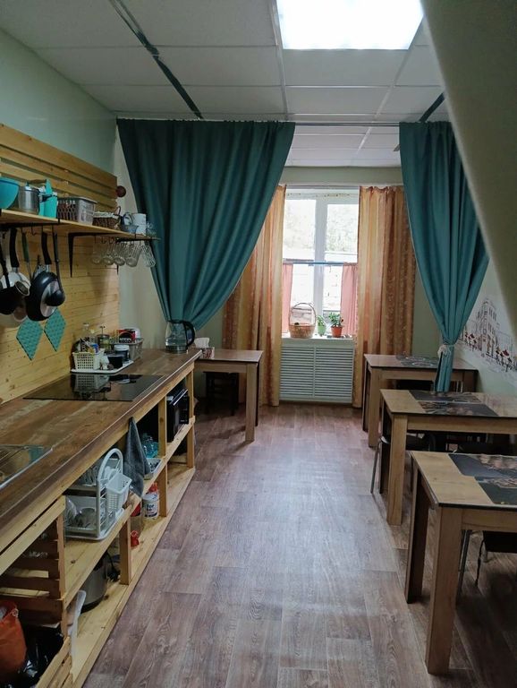 В хостеле 3 душевые, 3 туалета, кухня с плитой, микроволновкой, холодильником и всей необходимой посудой и местами приема пищи.